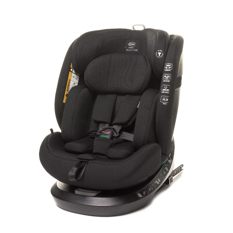 Fotelik 4BABY ROTO-FIX I-Size Black to gwarancja bezpieczeństwa i komfortu dla dzieci 40-150 cm. Z homologacją R129, obrotową bazą 360° i systemem Isofix + Top Tether, oferuje łatwy montaż i użytkowanie. Długie przewożenie RWF (do 105 cm), 15-punktowa regulacja zagłówka i wkładki redukcyjne zapewniają idealne dopasowanie i wygodę przez lata.