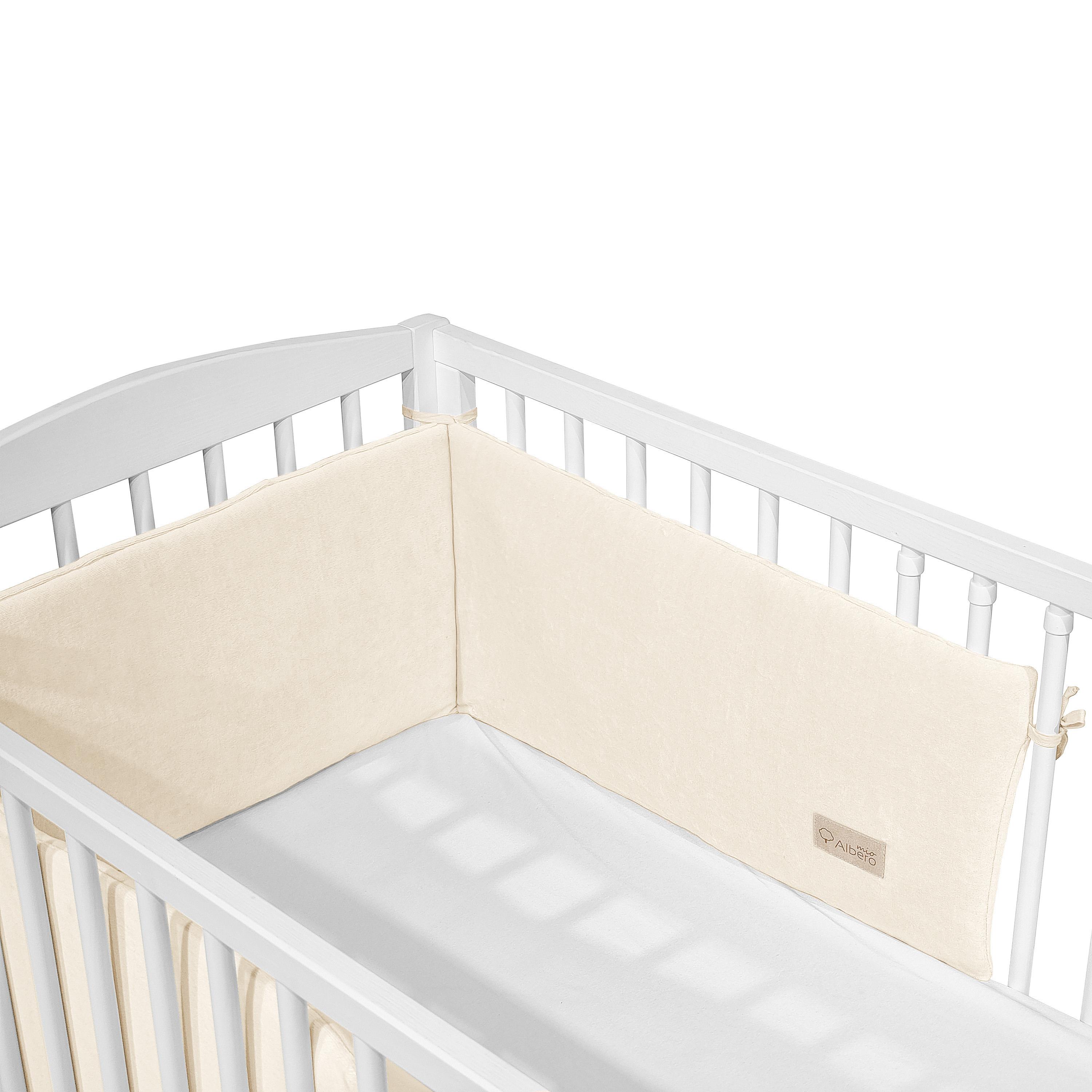 Ochraniacz do łóżeczka 180x30 cm beżowy welurowy bawełniany Oeko-Tex