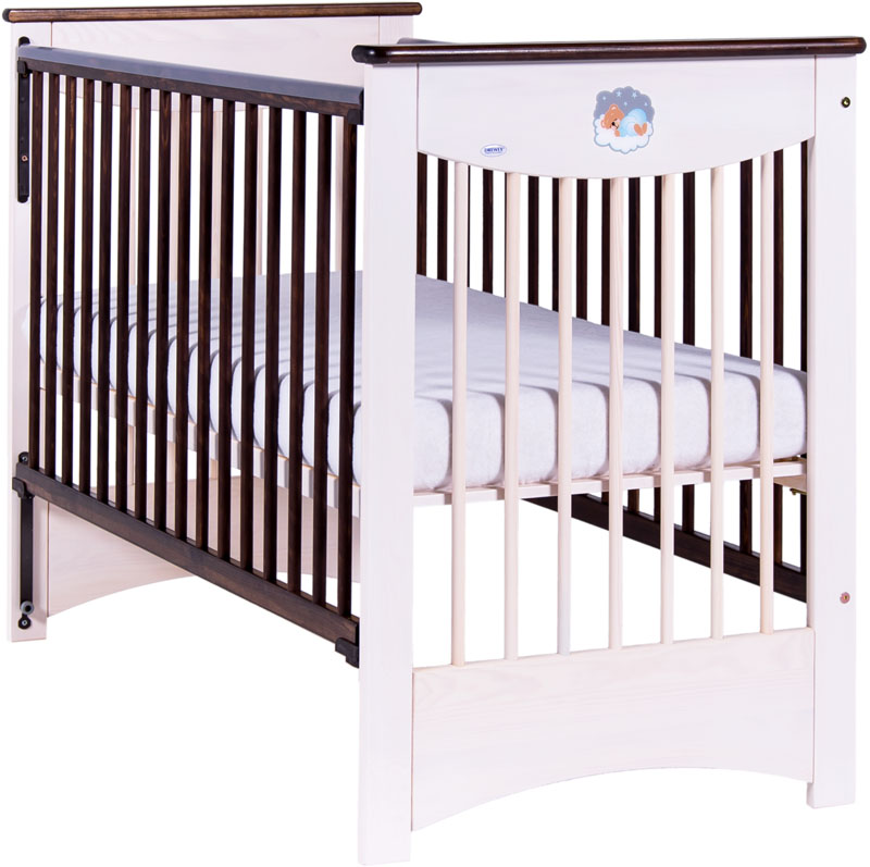 Łóżeczko MOCCA 120x60 biały/czekolada opuszczany bok