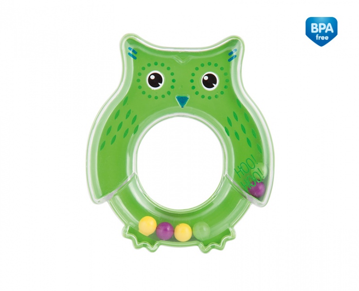Grzechotka dla niemowląt Sowa Zielona – Bezpieczna Pierwsza Zabawka