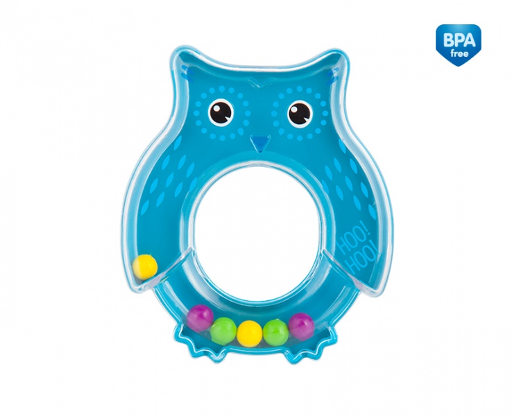 Grzechotka dla niemowlaka niebieska Sowa - pierwsza zabawka sensoryczna