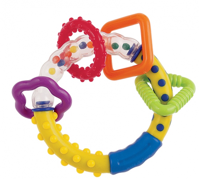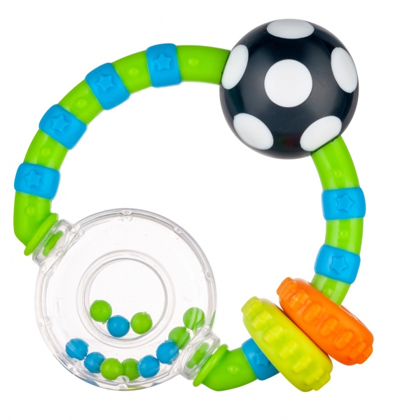 Grzechotka sensoryczna z kolorowymi kulkami, idealna dla najmłodszych dzieci. Lekka i łatwa do chwytania, stymuluje rozwój dzięki różnorodnym kształtom, barwom i dźwiękom. Wykonana z bezpiecznych, trwałych materiałów bez ostrych krawędzi, gwarantuje beztroską zabawę i wspiera poznawanie świata. Doskonała jako pierwsza grzechotka.