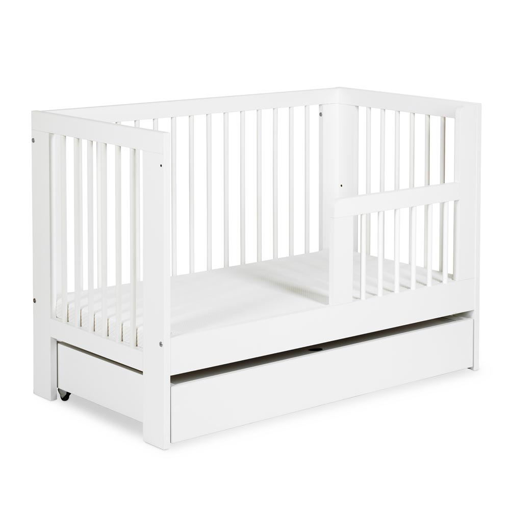 Białe Łóżeczko Dziecięce Kompakt 3w1 z Szufladą i Komodą