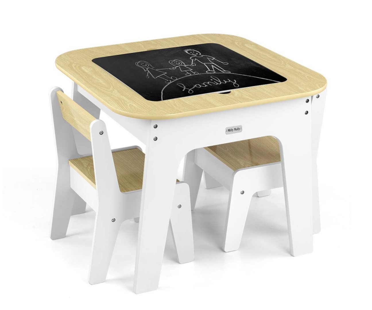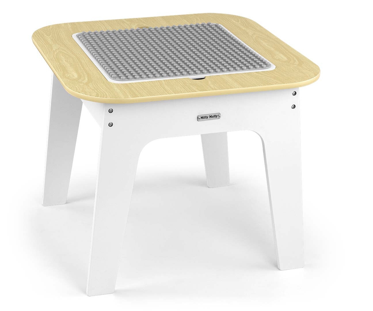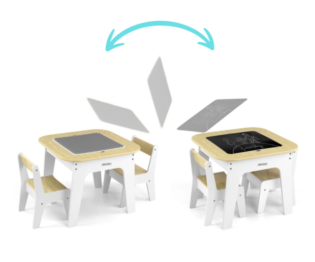 Co go wyróżnia? Wyjątkowa funkcjonalność to znak rozpoznawczy zestawu Olaf Blocks. Innowacyjny dwustronny blat to prawdziwy game-changer: z jednej strony idealna powierzchnia do zabawy klockami konstrukcyjnymi, z drugiej gładka tafla do rysowania, pisania czy malowania. Co więcej, blat jest wyjmowany, a pod nim kryje się przestronny schowek, który z łatwością pomieści zabawki, klocki czy kredki, ucząc dzieci samodzielności w porządkowaniu. Lekkie, stabilne krzesełka z zaokrąglonymi rogami gwarantują bezpieczeństwo i łatwość przenoszenia, a całość wykonana z wysokiej jakości płyty MDF zapewnia trwałość i łatwość pielęgnacji. Ten zestaw to inwestycja w rozwój, porządek i niekończącą się radość z twórczych aktywności.