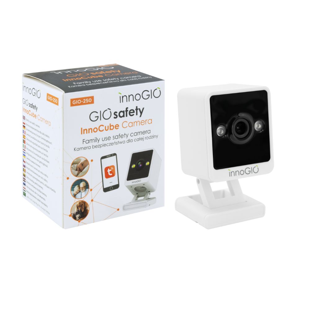 INNOGIO GIO-250 GIOsafety InnoCube to wszechstronna kamera Full HD 1080p, łącząca funkcje elektronicznej niani i monitoringu dla seniorów. Zapewnia stały nadzór dzięki detekcji ruchu/dźwięku, noktowizji i dwukierunkowej komunikacji. Steruj zdalnie przez aplikację Tuya i ciesz się spokojem. Idealna dla całej rodziny!