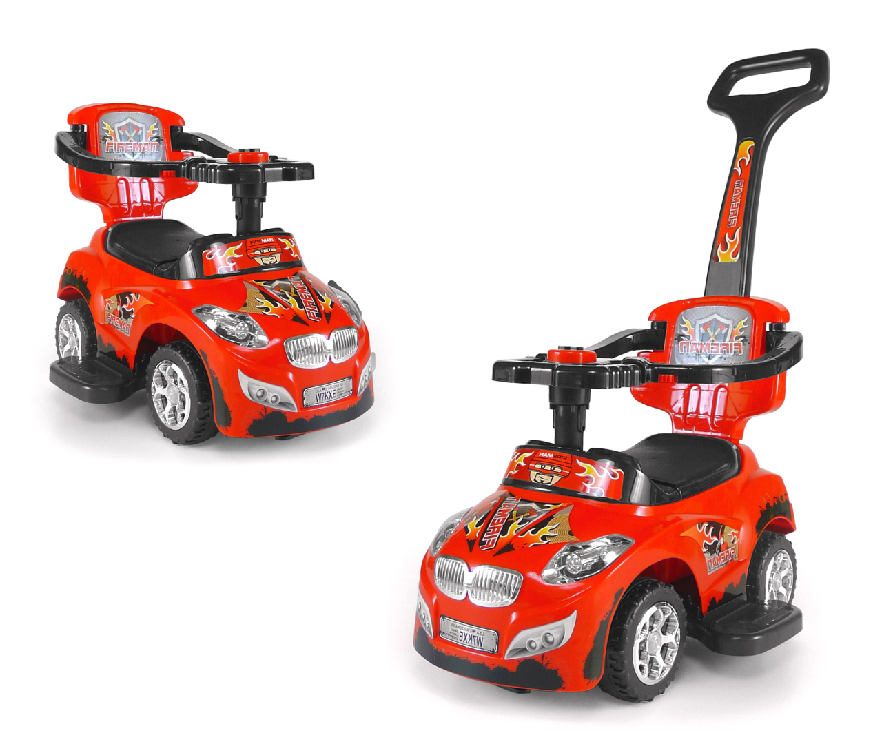 Jeździk Pchacz 3w1 Czerwony Happy dla Dzieci z Interaktywną Kierownicą