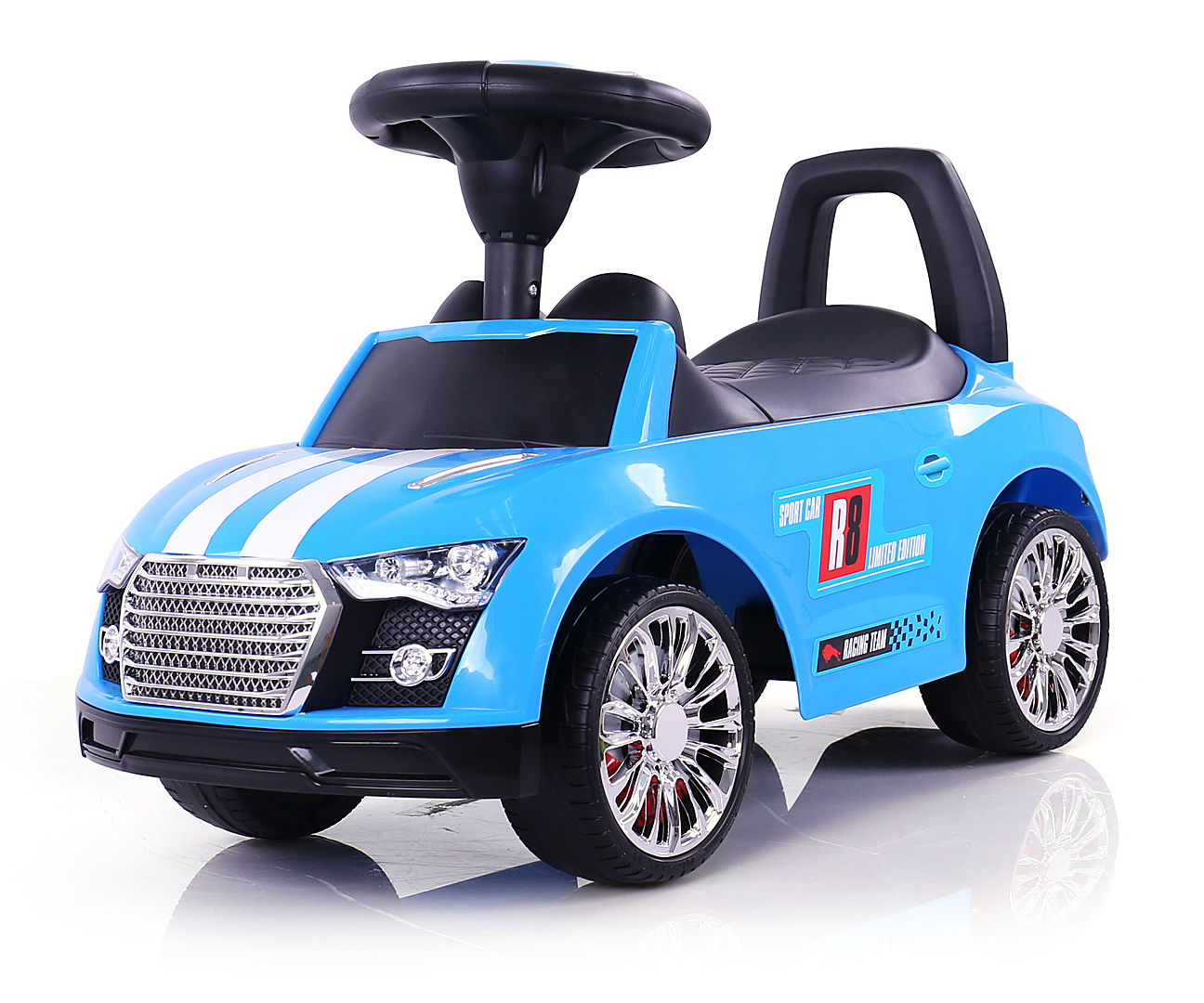 Jeździk dla Dziecka Niebieski Racer Sportowy Pchacz z Kierownicą