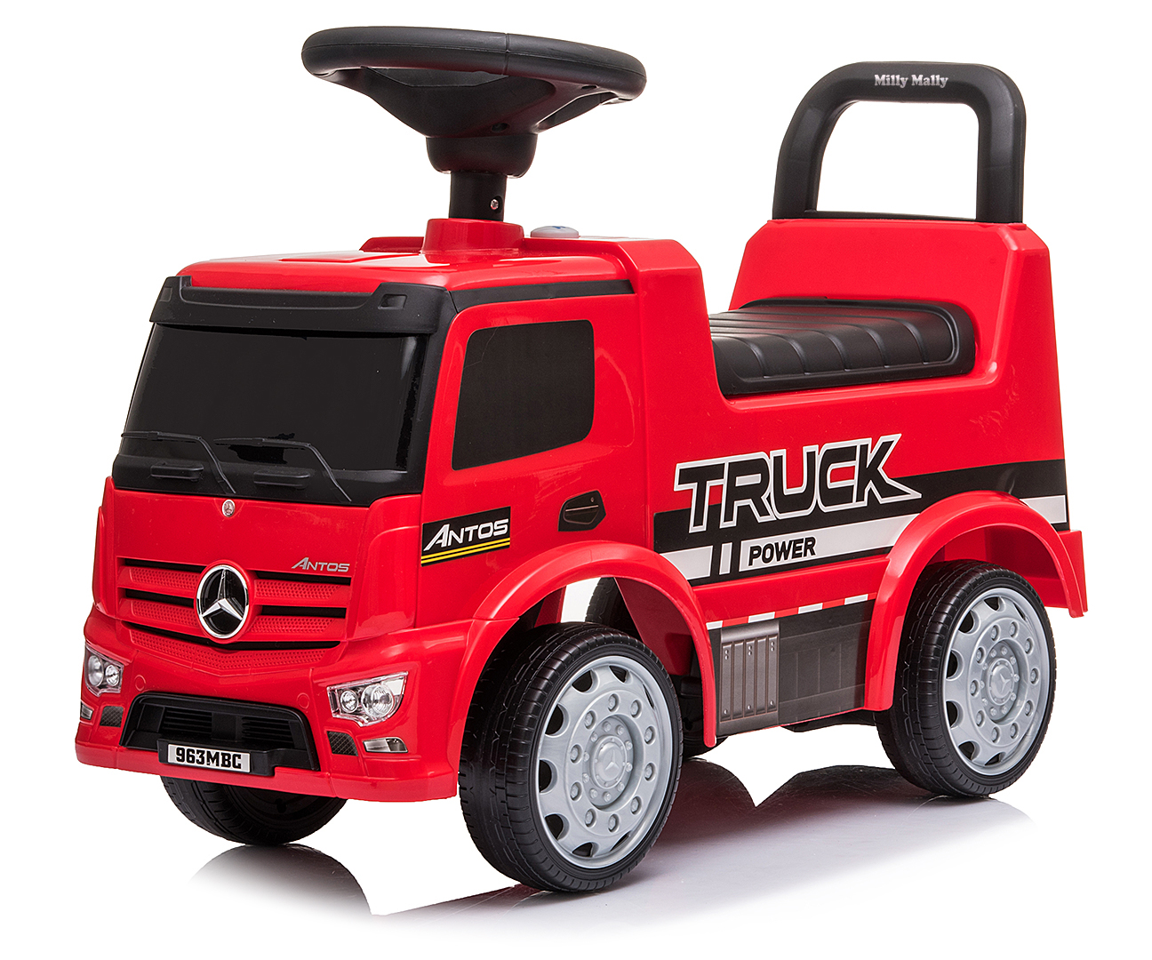 Licencjonowany jeździk MILLY MALLY Mercedes-Benz Actros Fire Truck Red to wierna replika kultowej ciężarówki strażackiej. Zapewnia bezpieczną i rozwijającą zabawę dzięki skrętnym kołom, klaksonowi, melodyjkom, światłom sygnalizacyjnym oraz schowkowi. Wspiera rozwój motoryczny i równowagę. Idealny dla dzieci 12-36 miesięcy, maks. 23 kg. Odkryj radość z bycia małym strażakiem!