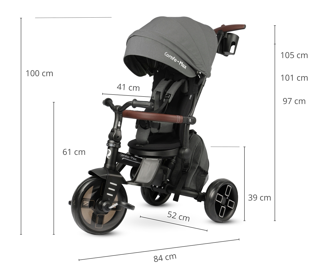 Ten wielofunkcyjny rowerek trójkołowy został zaprojektowany, aby dostosowywać się do zmieniających się potrzeb Twojego dziecka. Funkcja „wolnego koła” i „wolnej kierownicy” pozwala maluchowi uczyć się pedałowania i sterowania bez wpływu na rzeczywisty tor jazdy, podczas gdy rodzic wciąż ma pełną kontrolę dzięki regulowanej rączce do prowadzenia. Gdy dziecko będzie gotowe, Comfo Max łatwo transformuje się w klasyczny rowerek trójkołowy, wspierając samodzielność i rozwijając umiejętności.