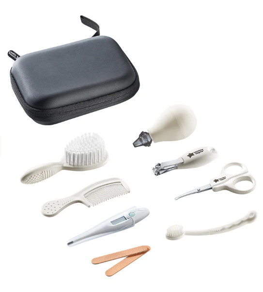 | Zawartość | Cyfrowy termometr doustny, Szczoteczka, Grzebień, Nożyczki, Obcinacz do paznokci, 2 pilniczki z pilnikiem, Aspirator do nosa, Szczoteczka do zębów |
