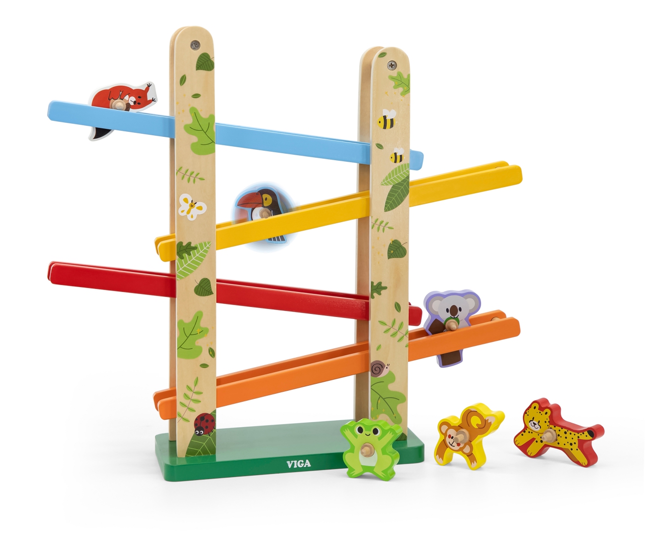 VIGA Drewniana Zjeżdżalnia Dżungla dla Dzieci z Klockami Zwierzętami