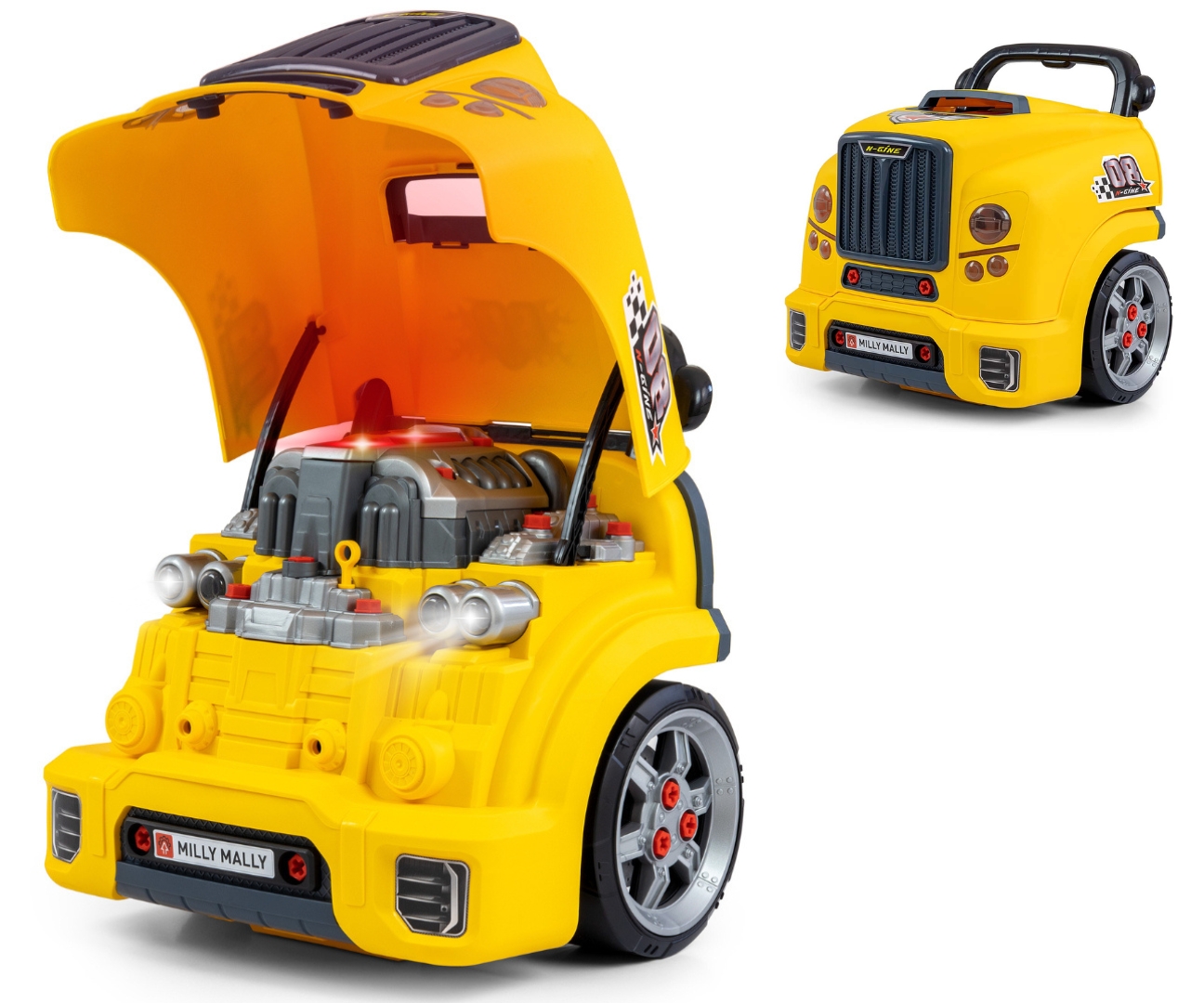 Milly Mally N-gine Czerwony to innowacyjny silnik rozkręcalny dla dzieci, który zamienia zabawę w pasjonującą lekcję mechaniki. Realistyczny model auta z otwieraną maską, efektami świetlnymi i dźwiękowymi oraz pełnym zestawem narzędzi. Rozwija zdolności manualne i logiczne myślenie zgodnie z modelem STEM. Idealny prezent dla małych odkrywców motoryzacji w wieku 3+.