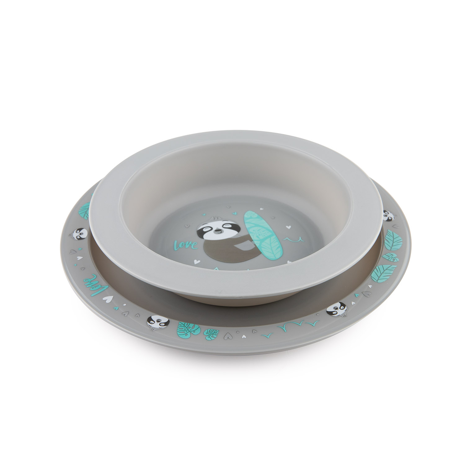 Odkryj Zestaw Naczyń dla Dzieci 2 Elementy w szarym kolorze, idealny do nauki samodzielnego jedzenia. Lekki, poręczny, z bezpiecznego materiału wolnego od BPA. Talerzyk i miseczka z uroczymi, pastelowymi nadrukami zachęcą malucha do posiłków. Ergonomiczny design ułatwia trzymanie. Rozpocznij przygodę z rozszerzaniem diety już od 4m+.